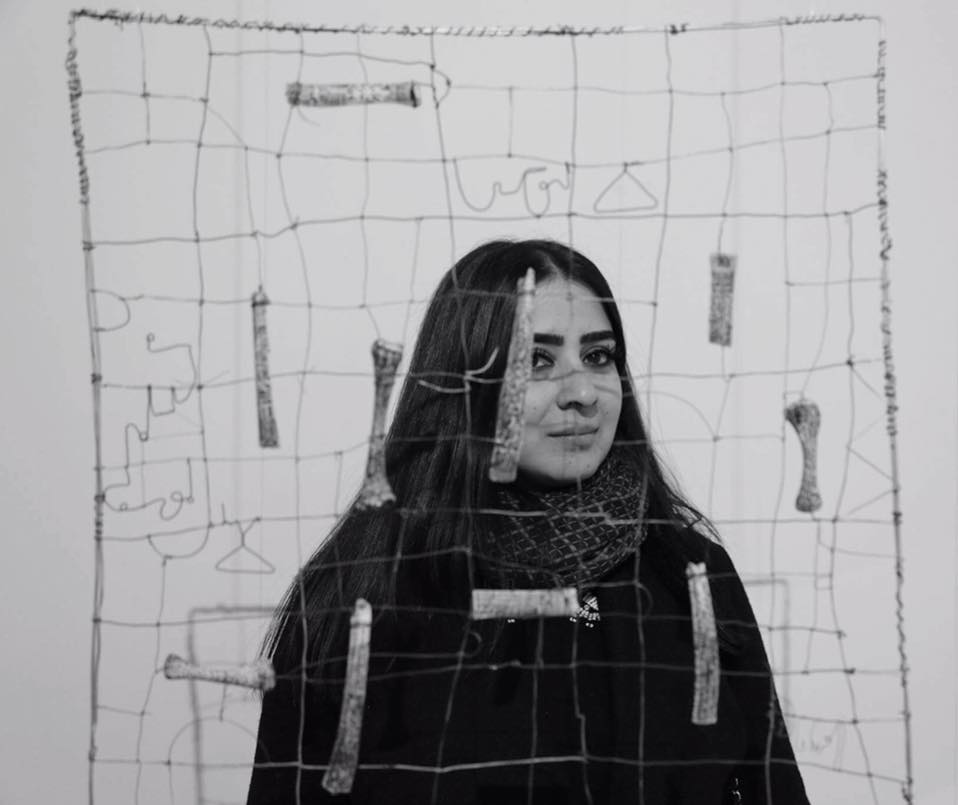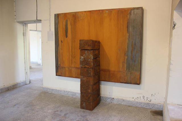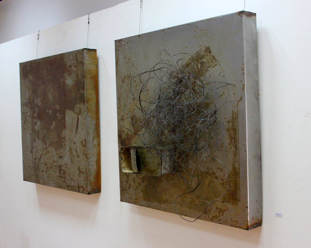 Naz often uses rusted metal objects in her work. It is too simplistic to interpret Naz’s use of rusted metal as representing corrosion and decay. However, there is also a duality to her art and these pieces can also be understood as salvaging items that have been discarded and giving them new life, like a phoenix rising from the flames. In 2017, she displayed her work “Rust Process” within the remains of a collapsed house as part of the exhibition “Argue-Object” in Sulaymaniyah. The display featured a slab of rusted iron and a tower of bricks. For me, this points to the precariousness of life and human control, at any moment the bricks feel ready to tumble down, bringing chaos to uneasy order. In another mixed-material work, Naz attached wiry metal and a half open aluminium can to a square block of rusted iron. Has the wiry metal escaped from the half open can, bringing disorder or is the wiry metal being put back into the can to create order? This uncertainty is one that Naz must often consider, from her conflict-ridden childhood to life in present-day Kurdistan: can anyone truly control their destiny and does chaos ever have purpose?