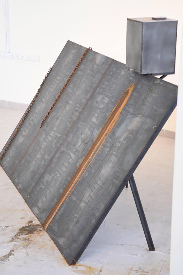 Naz doesn’t just repurpose objects for her art and present them in the state she finds them, her process is alchemical. To create some of her pieces, she chemically alters her material, bringing it back to its original state or transforming it into something new; thus planting her own inimitable presence on the artwork. In 2018, in her “Pre-Identity” exhibition at the Museum of Contemporary Art in Sulaymaniyah, she created a dynamic installation art piece. This work featured drops of water from a tank onto an iron surface and showed the oxidizing effect of water on the slab of iron. How do you interpret this natural process that Naz brings about through the combining of elements? On a micro-scale is she playing God or is she reminding her audience that humankind cannot control the elements?