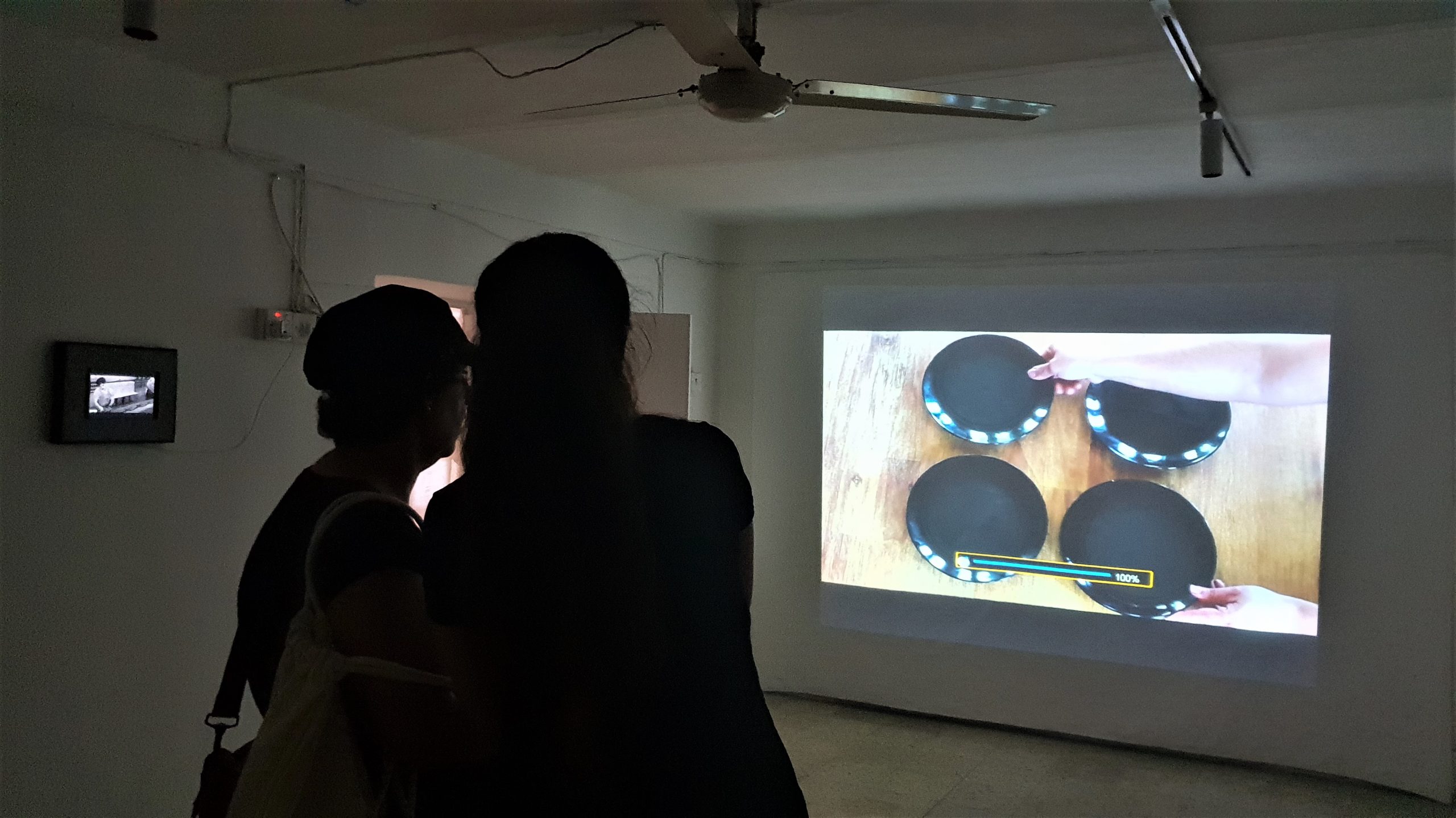Five pieces by five females’ artists. Four of them were videos except for the final performance. The audience were invited to spectate the art pieces in a separate room – this set-up theatre was marked with posters designed by the SA’ATCHI gallery, alongside social media posts and announcements.