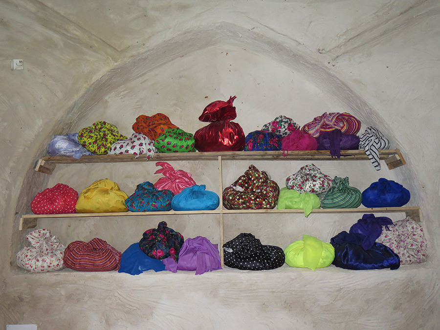 One of Sakar Sleman’s most recent solo shows is staged in a nineteenth century Ottoman Turkish bath. The venue, Hamam Kifri, is located in Sulaymaniyah Province of Iraqi Kurdistan. On an aesthetic level, Sakar’s 2017 the Hamam Kifri installation reminds me of the interior of Stonehenge’s recreated houses. The simplicity and clean lines of the Hamam Kifri’s features visually appealed to me as I researched this review, along with recalling cherished memories of long ago travel adventures. Although I’m not a regular Hamam visitor, I have been to Hamams across the Middle East and I loved becoming an adopted member of a female bathing community. The sense of relatability drew me in to Hamam Kifri.
